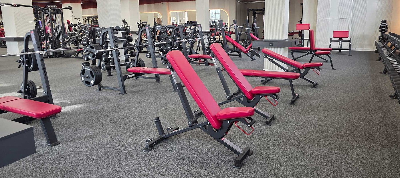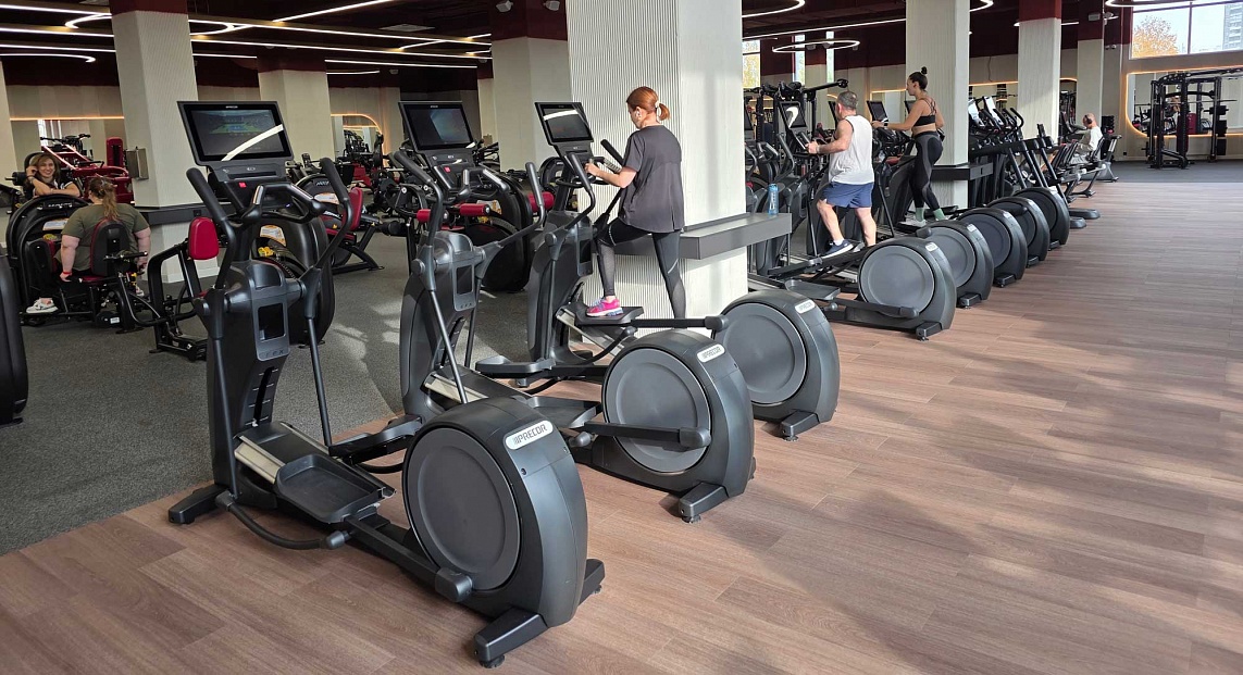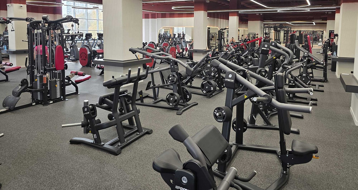Тренажерный зал площадью больше 1500 м² оснащен мощной системой вентиляции и современной линейкой тренажеров и фитнес-оборудования ведущих брендов: более 50 единиц кардиотренажеров Precor, силовые и блочные тренажеры Hoist и Precor, высококлассные силовые тренажеры Foreman, зона для функциональных тренировок.